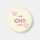 Eu era o KIND hoje ou o seu texto personalizado neste ímã de botão de encorajamento com três linhas de texto personalizado e dois corações xadrezes.