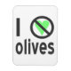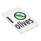 Eu odeio azeitonas. O design usa letras pretas, um coração verde e o sinal internacional "NÃO" para ler "Eu odeio azeitonas". Para aqueles que não "amam" elas, realmente as desaprova, mas têm senso de humor, amam rir e têm o osso do humor tickled.