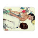 Artista:Joe DeMers | Mulher de vestido listrado em zebra e alfinete de flor vermelha que se debruça sobre uma cadeira que fala com um homem de fato branco