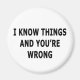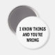 Para o amante sarcasmo em todos nós. Veja esta design de roupa e presentes "Eu sei coisas e você está errado".