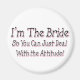 Eu sou a Noiva, Então Você Pode Lidar com a Atitude Este design único rosa e preto é um ótimo presente para Noivas. Um presente perfeito para o chá de noiva. Se você conhece uma Noiva com Atitude, esse ditado engraçado de noiva faria um presente perfeito para ela! Esse Ditado Fofo para Noivas certamente colocará um sorriso no rosto da senhora especial que entende o Humor de Noiva.