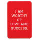 Manifesto abundância e prosperidade com este ousado ímã vermelho "Eu sou digno de amor e sucesso". Uma afirmação diária para inspirar confiança e atrair a vida que você merece