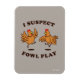 "I Suspect Fowl Play", gráfico de frango desenhado por bCreative mostra um par de galinhas marrons brincando! Isso faz um presente excelente para a família, amigos ou um presente para você mesmo! Este gráfico engraçado é um excelente adicional ao estilo de qualquer um. Criativo é um criador líder e licenciador de designs e propriedades originais e tradicionais. ©LCT Creative. Licença de bCreative.com