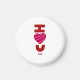 Vocês podem admirar meu desenho de Dia de os namorados e desenho romântico que eu chamo, "Eu te amo", de um coração vermelho e rosa listrado, adicionado a este ímã redondo. Você pode solicitar este ímã redondo em Pequeno 1/4 polegada, Padrão 2 1/4 polegada, Grande 3 polegadas.