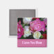 Amo-Te, mãe, imã com fotografia rosa. Você pode alterar a cor, a fonte, o tamanho e a posição do texto clicando no botão personalizar. A cor de fundo rosa também pode ser alterada.
