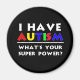 "Eu tenho autismo. Qual é o seu super poder?" Nossos amigos amavam tanto a camisa original "Qual é o seu Super Poder?" e continuavam perguntando onde a tínhamos. Zazzle é a resposta! Agora todos podem ter um. E então ela simplesmente surgiu de lá, e agora temos portas copos, botões, adesivos, e qualquer outra coisa que você possa imaginar.