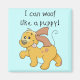 Um cão marrom de vista feliz com texto preto do estilo do miúdo que me lê "pode woof como um filhote de cachorro!" em t-shirt, em sacolas, em etiquetas, em canecas, e em mais do cão de filhote de cachorro.