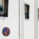 Uma bandeira americana viva e rabiscada num fundo negro. Três outras variações disponíveis.