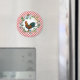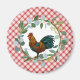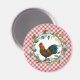 Excelente magnet para o tema decoração da sua fazenda - apresenta fundo de xadrez vermelho-piquenique diagonal com a corante d'água eucalipto e ilustração colorida do galo