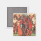Vintage Downie Brothers poster de circo mostrando elefantes com mulheres e treinadores pendurados na cabeça da boca do elefante.