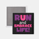 Se você gosta de correr, correr 5Ks, 10Ks, meia maratona, ou maratonas, você vai adorar este design de texto colorido em roxo e rosa que lê Run and Embrace Life!