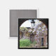 IMÃ DE GELADEIRA - Entrada entonada para o antigo pátio da casa do Bispo em Exeter coberta com arbustos roxos floridos. Olhar através do portão arquitetado de pedra velha parece entrar no mundo da fada. Uma das antigas casas tradicionais preservadas na Grã-Bretanha, parte do Patrimônio Nacional Britânico. Série viagem/Arquitetura - Exeter, Inglaterra, Reino Unido. Fotografia original/Arte/Design por trabalho4Sonho.