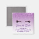 Imã salve a data com uma design de na moda de tendência. O plano de fundo é uma cor de gradiente roxo com uma imagem de brilho espumante falso que desce do topo. Um par de pestanas giro por baixo da imagem brilhante.
