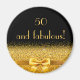 Elegante, clássico, glamouroso e feminino. Um arco de cor dourada com brilho e brilho de ouro, um pouco de brilho e luxo para um aniversário. Fundo preto. Com o texto: 50 e fabuloso!