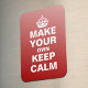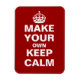 Faça o seu próprio íman flexível, mantenha-se calmo e carregue-o usando o nosso modelo fácil de personalizar. Todo o texto pode ser alterado, redimensionado, movido ou excluído. A cor vermelha de fundo pode ser alterada para qualquer cor que você quiser - basta pressionar 'Personalizar' e deixar sua criatividade fluir!