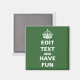 Edite o texto para criar o seu próprio ímã parodia "Manter Calmo e Continuar". Clique em "Personalizar" e, em seguida, clique em "Editar" para alterar o plano de fundo para qualquer cor!