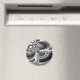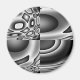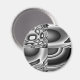 Este ímã apresenta um padrão preto e branco que pode se parecer com muitas formas e formas, mas toda a imagem se parece com uma mau com olhos escuros encarados e um sorriso largo.