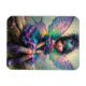 "Fada do Flor do Crepúsculo" Uma fada branca com asas borboletas espumantes senta-se graciosamente num tronco de mosca numa floresta encantada. Seu vestido rufflado combina tons ricos de roxo, lágrimas, e lilás, combinando seu cabelo listrado e asas brilhantes. A atmosfera mágica está repleta de flores brilhantes e luz sonhadora, capturando a beleza serena de uma floresta crepústica.