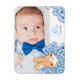 Faire-part naissance magnet élégant avec photo et dessin d'un lapin mignon et fleurs. Idéal pour créer un souvenir inoubliable à toute la famille et les amis.