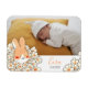 Faire-part naissance magnet élégant avec photo et dessin d'un lapin mignon et fleurs. Idéal pour créer un souvenir inoubliable à toute la famille et les amis.