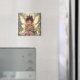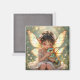 A cute magnet featuring a sweet little fairy girl holding her baby dragon. Cute anime chibi illustration.