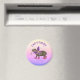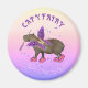A cute and funny design featuring an adorable capybara fairy holding a magic wand in her mouth, surrounded by sparkling stars. She wears fashionable pink shoes and stands on a soft gradient background that blends gentle yellow, pink, and lilac tones. This playful and dreamy illustration is perfect for girls who love magical animals and fairy vibes.