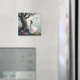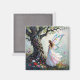 This pretty magnet has a beautiful and magical scene with a fairy standing next to a tree full of whimsical vines and flowers.