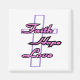 Fé, Esperança, e Amor cor-de-rosa com a fronteira preta sentada numa cruz roxa. A fé é centrada na inspiração.