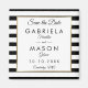 Com um fundo clássico preto e branco de faixa, esta elegante imã salve a data apresenta uma elegante borda de folha de ouro falso que enquadra seus detalhes de data definidos na tipografia quic. Projetado por Thisnotme©