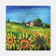 Paisagem da Toscana, cor, vibrante e expressiva beleza da flora e campos de Verão italianos em laranja amarelo vivo, verde, castanho, cor azul, lindas flores, ciprestes e oliveiras, antiga casa de fazenda rustica sob o céu azul.Pintura acrílica em canvas.