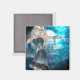 Céu azul etéreo - Lua cheio brilhando através das nuvens - Bela deusa Lua loira, Sky Siren apontando para seu belo carregando de pomba branca um rosa solteiro