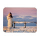 Esta incrível foto do Getty Images apresenta uma cena de inverno mostrando um farol coberto de gelo no lago Michigan banhado à noite e apoiado por um céu colorido pastel.