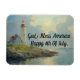 Vintage, foto de um farol na borda do oceano, é apresentada neste ímã flexível para o dia 4 de julho. Com a mensagem, "América Deus abençoe Feliz 4 De Julho". Um imã colorido faz uma decoração de excelente para o feriado de julho ou dá como um pequeno presente também!