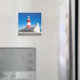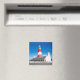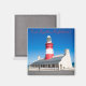 Imã de geladeira com uma imagem colorida do farol de Cape Agulhas, no ponto mais sul da África do Sul, tirada contra o céu azul.