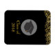 Um ímã flexível que diz: Classe 20xx. Projetado com falso brilho de confete dourado. Colocado sobre um fundo preto. Ilustrado com um boné de formatura preto com um círculo semitransparente atrás. Elegante e chic.
