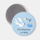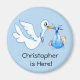 Favoritos para festas bonitos de Chá de fraldas apresentam um carregando de cegonha um doce pacote de bebês de menino. Personalize com o nome do bebê.