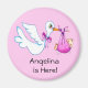 Favoritos para festas bonitos de Chá de fraldas apresentam um carregando de cegonha um doce pacote de bebês de meninas. Personalize com o nome do bebê.