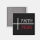 A Fé Sobre O Medo. Texto vermelho, preto e branco com uma cruz. Íman cristão.