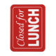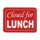 Fechado para o ímã de sinais de almoço para a porta da sua empresa ou escritório para que clientes ou outros saibam que você está fora para o almoço e que voltará. Altere o fundo vermelho para outra cor, se desejar.