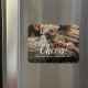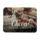 Ímanes de fotos de feriado personalizados impressos com um modelo simples para personalização. Esta design moderna chic tem uma borda de confete falsa e texto de caligrafia na moda. O texto diz "Saúde!". Personalize-o com suas fotos e adicione seu nome de família e o ano. Use as ferramentas de design para editar o texto, adicionar mais fotos e criar um design de íman de fotografia de Feliz ano novo exclusivo.