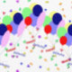 Uma divertida, alegre e colorida imagem de 60 anos com balões e confete.