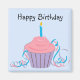 Atrair alguém com este magnata e feliz ímã de aniversário... colocar um com um cartão... Cupcake rosa num revestimento de cupcake roxo com fitas e uma vela azul bonito!