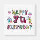 Feliz aniversário de 7. Design de aniversário engraçado e fofo com um lindo ursinho de pelúcia segurando um presente e um lápis engraçado escrevendo os desejos de aniversário. Uma combinação perfeita para roupas, camisas e acessórios.