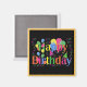 Feliz aniversário, hora de celebrar, confete colorido e balões de aniversário.