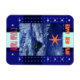 Feliz ano novo Card-Magnet em russo e inglês Para todos os seus parentes russos, amigos colegas. Uma estrela, uma cabana russa (izba), lua, flocos de neve, neve e árvores de inverno