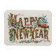 Íman Feliz Ano Novo em Troncos de Árvores, Bolotas e Fl