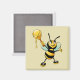 Uma abelha de mel feliz com a sua colher de mel a descer de uma vara de mel. Seus braços se levantaram no ar e um grande sorriso em seu rosto, entusiasmado por ter tanto mel.