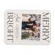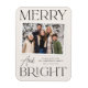 Um moderno ímã fotográfico de férias com sua foto horizontal, bordado em uma foto instantânea branca. A expressão "Feliz e Brilho" é apresentada em letras negras com fundo festivo de baunilha. Personalize o ímã fotoNatal com sua saudação personalizada, seu nome de família e seu ano.