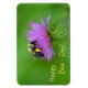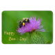 Este imã de aniversário fofo apresenta um néctar de uma abelha bonitinha que recolhe néctar de uma flor de palha roxa num campo de Connecticut.