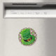 Um chapéu verde irlandês de Dia de São Patrício verde giro numa Imã de geladeira com fundo abstrato shamrock. O ano de tipografia de fontes Quirky pode ser facilmente personalizado para se adequar ao ano civil atual. Divertido de ser exibido na cozinha ou distribuído como presentes pequenos quando você comemora as festividades do feriado de 17 de março.